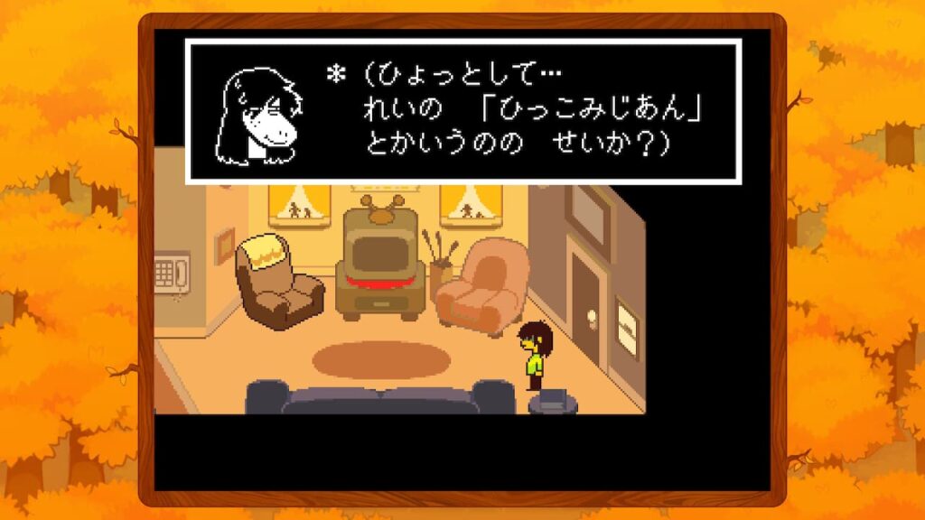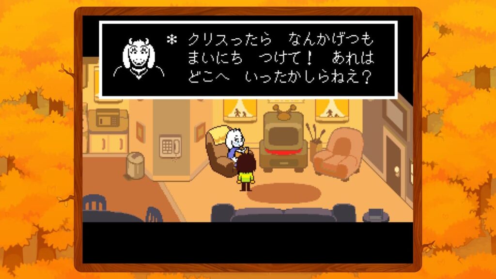 クリスは、前作UNDERTALEの操作キャラであるフリスクが「無色透明」であったのとは対照的に、好みや性格、過去の出来事をはじめとしたバックグラウンドがはっきりと存在し、さらにはプレイヤーによる操作を自覚をしているように見えます。これは、他のゲームの主人公にはない特徴です。