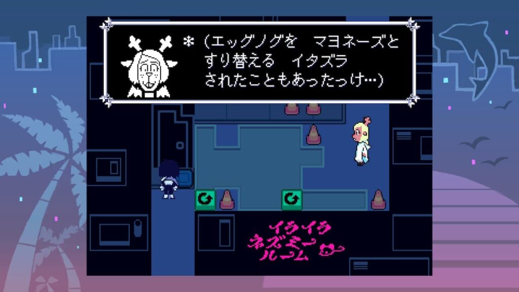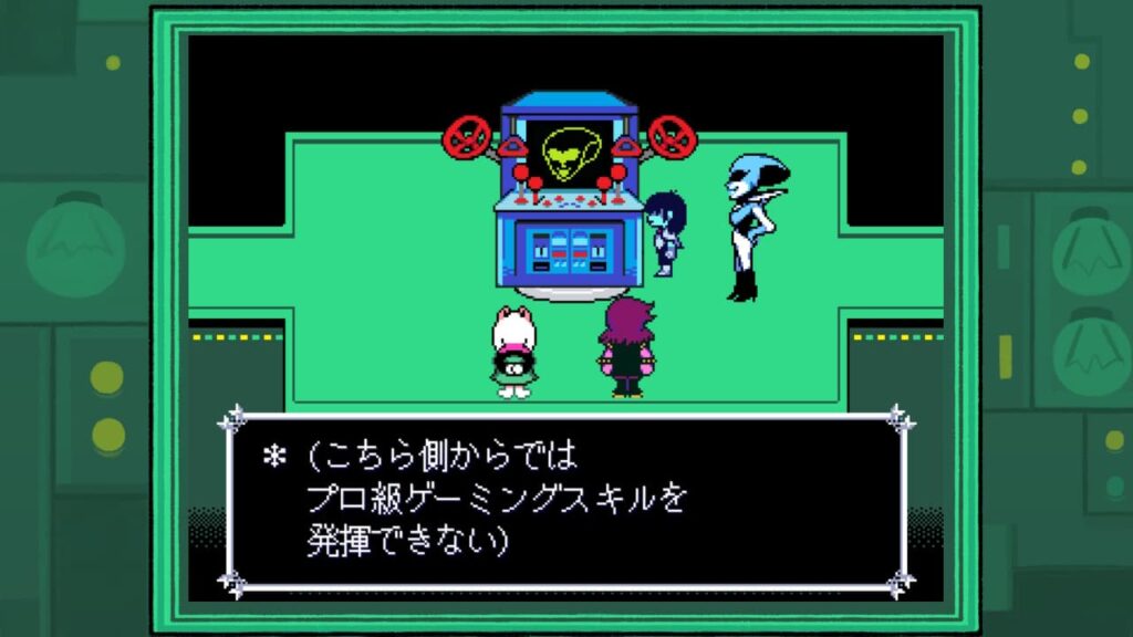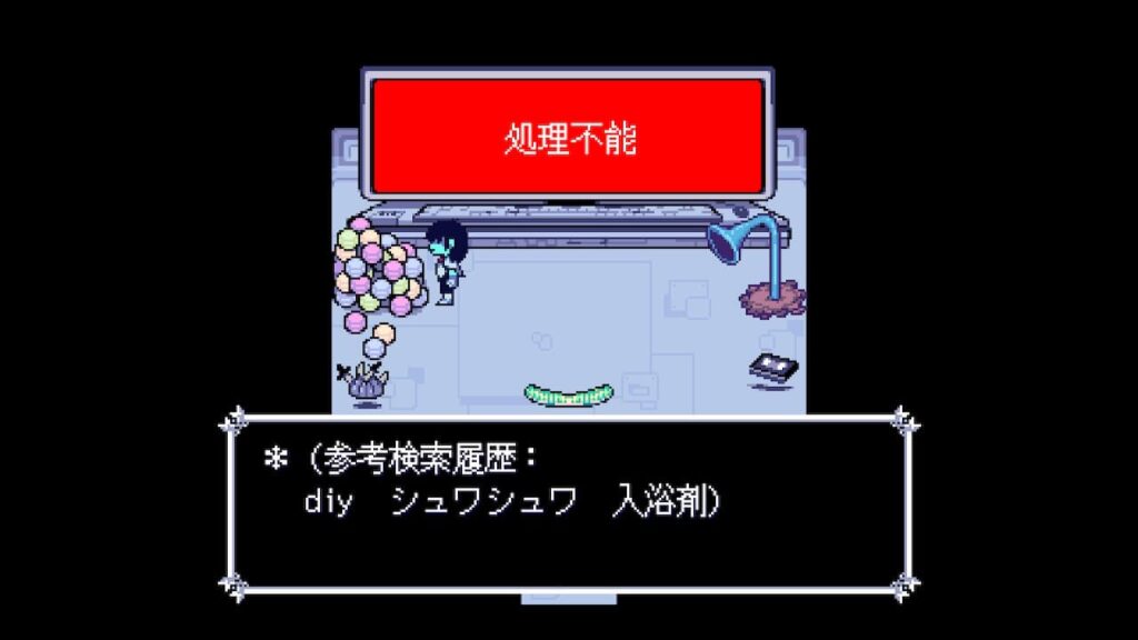 ところで、アンダーテールに特徴的な要素といえば、登場キャラクターがプレイヤーに直接語りかけてくるメタ的な演出でした。デルタルーンもアンダーテールと違った形でプレイヤーに画面の前の自分を意識させる仕掛けが施されているものと思われます。