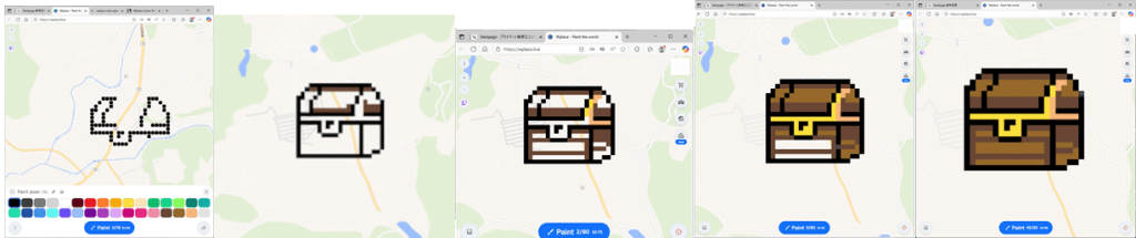 23*20ピクセルの小さな絵を描いてみました。スタミナ制限があるため、5回に分けて書く必要がありました。